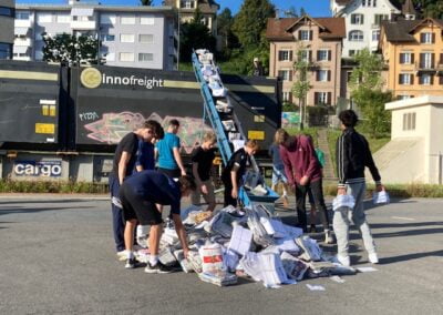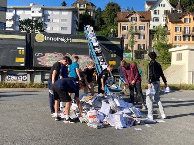 Bei prächtigem Wetter fand heute in Horgen (zeitgleich wie in Wädi mit dem HCW) das jährliche Altpapiersammeln statt. Obwohl beide Vereine dasselbe Datum zugeteilt bekommen haben, waren in Horgen bereits am Morgen um acht Uhr ca. 30 motivierte Helfer am Güterbahnhof zur Stelle. Nachdem die Touren verteilt und die Teams (Fahrer und Auflader sowie Befüller vor Ort des Bahnwagen) gebildet waren ging es auch schon los. Für Stärkung und Getränke für die fleissigen Helfer war gesorgt und am Mittag gab es für alle eine Wurst vom Dorfmetzger, welche wie immer extrem fein war.