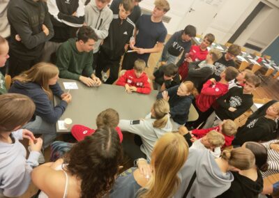 Der letzte Morgen im Trainingslager verlief recht entspannt. In gemischten Gruppen haben wir verschiedene Spiele in einem unterhaltsamen Parcours absolviert. Darunter befanden sich auch nicht-olympische Disziplinen wie die Memorystaffel, der Dreibeinlauf und das Keulenkegeln. Danach haben die Trainer von allen Teilnehmenden persönliche Feedbacks gesammelt, und nach dem Gruppenfoto wurde das letzte Mittagessen serviert.