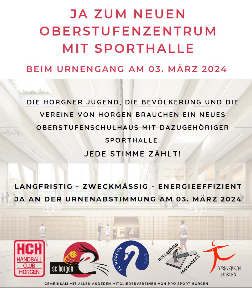 Die Horgner Jugend, die Bevölkerung und die Vereine von Horgen brauchen ein neues Oberstufenschulhaus mit dazugehöriger Sporthalle!