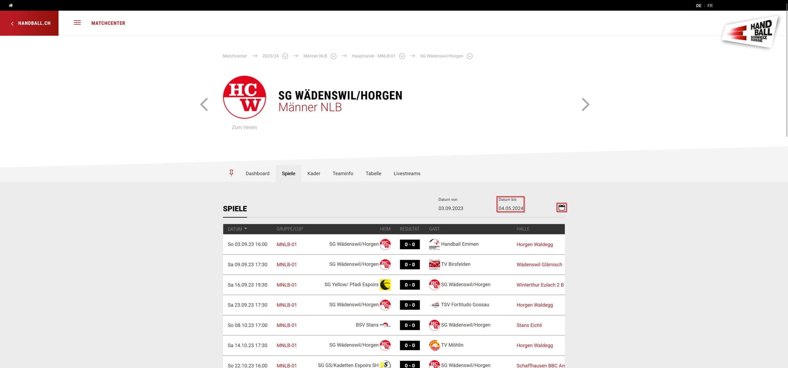 Du willst kein Spiel unserer NLB – Mannschaft mehr verpassen, nichts leichter als das. Gehe auf die Handball.ch Seite, ändere das Datum auf den letztmöglichen Termin und drücke auf das Kalendersymbol. Das ics File, das heruntergeladen wird, kannst du nun einfach in deinen Kalender auf dem Handy, PC usw. importieren.