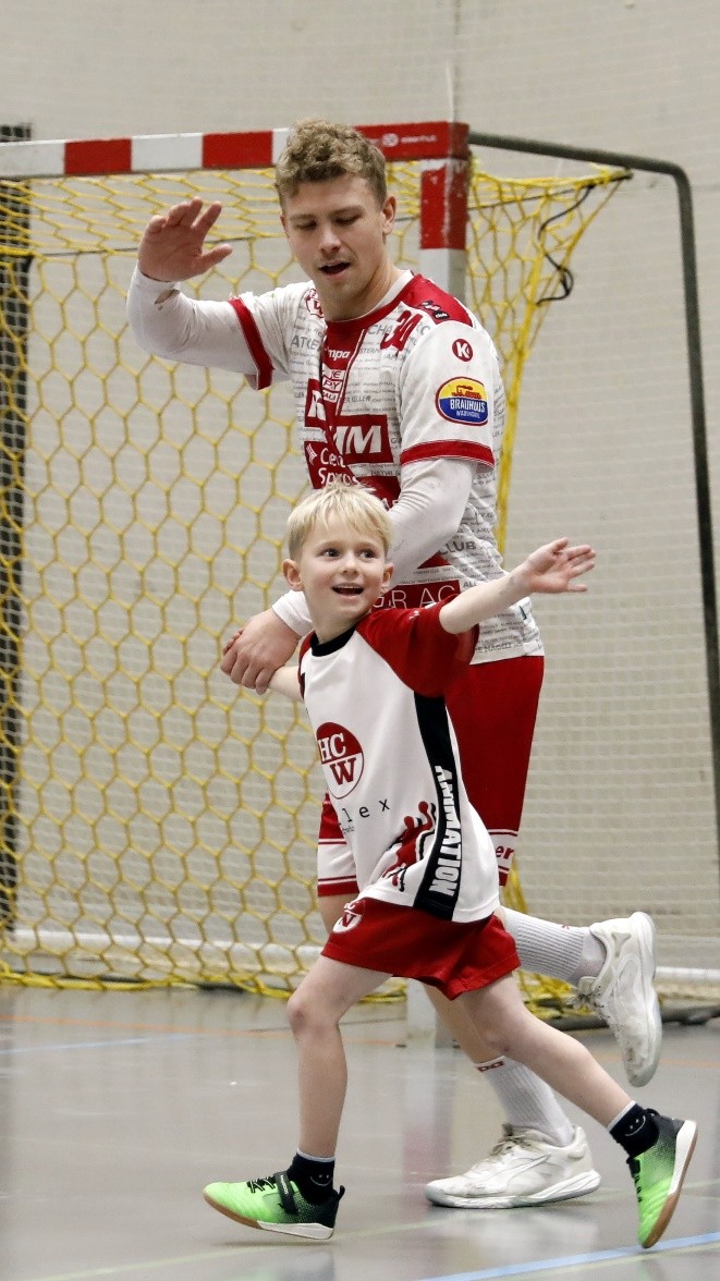 Ein besonderes Highlight war der Einlauf der Spieler, die von den jüngsten Handballern des HC Wädenswil in die Halle begleitet wurden. Im Anschluss durften die Nachwuchstalente gemeinsam mit der 1. Mannschaft für ein Gruppenfoto posieren – ein unvergessliches Erlebnis für die Kinder.