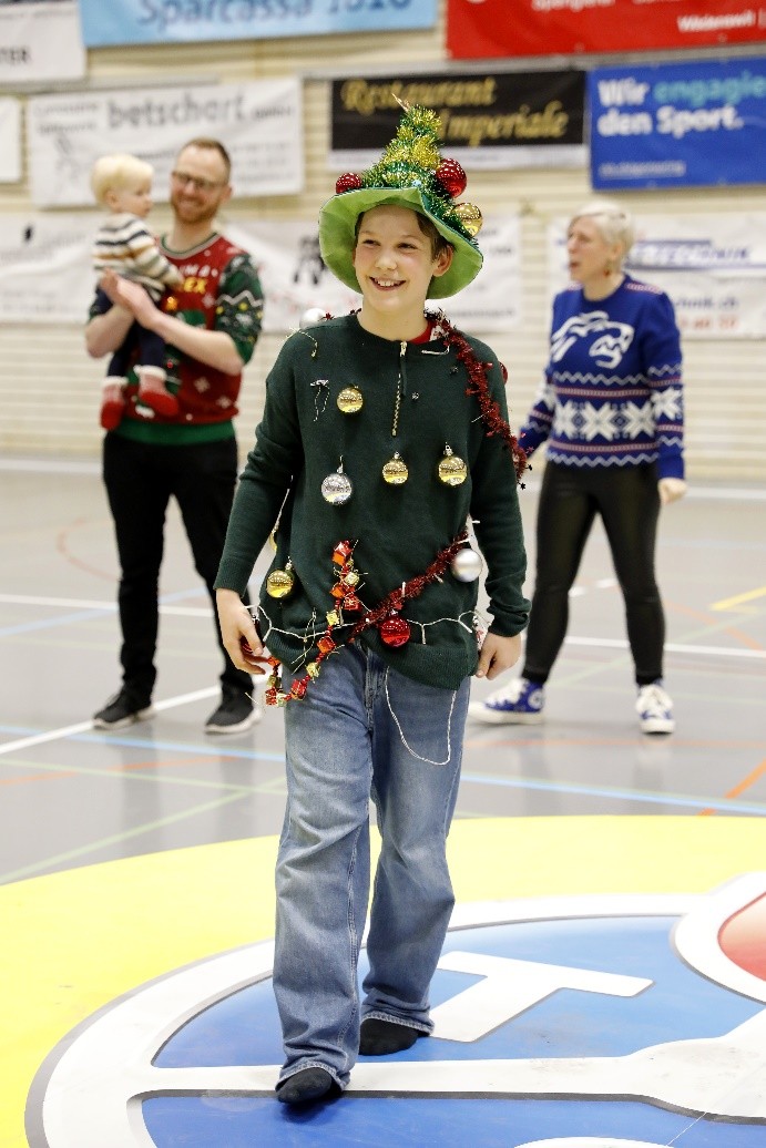 Alle Besucherinnen und Besucher, die in einem ausgefallenen Weihnachts-Outfit erschienen, erhielten freien Eintritt zur Partie und hatten am Ende die Chance, einen attraktiven Preis zu gewinnen. Für das leibliche Wohl war ebenfalls bestens gesorgt: Glühwein, Punsch, Bratwurst, Kürbissuppe, Chnoblibrot und Lebkuchen sorgten für eine festliche Stimmung in der Halle.