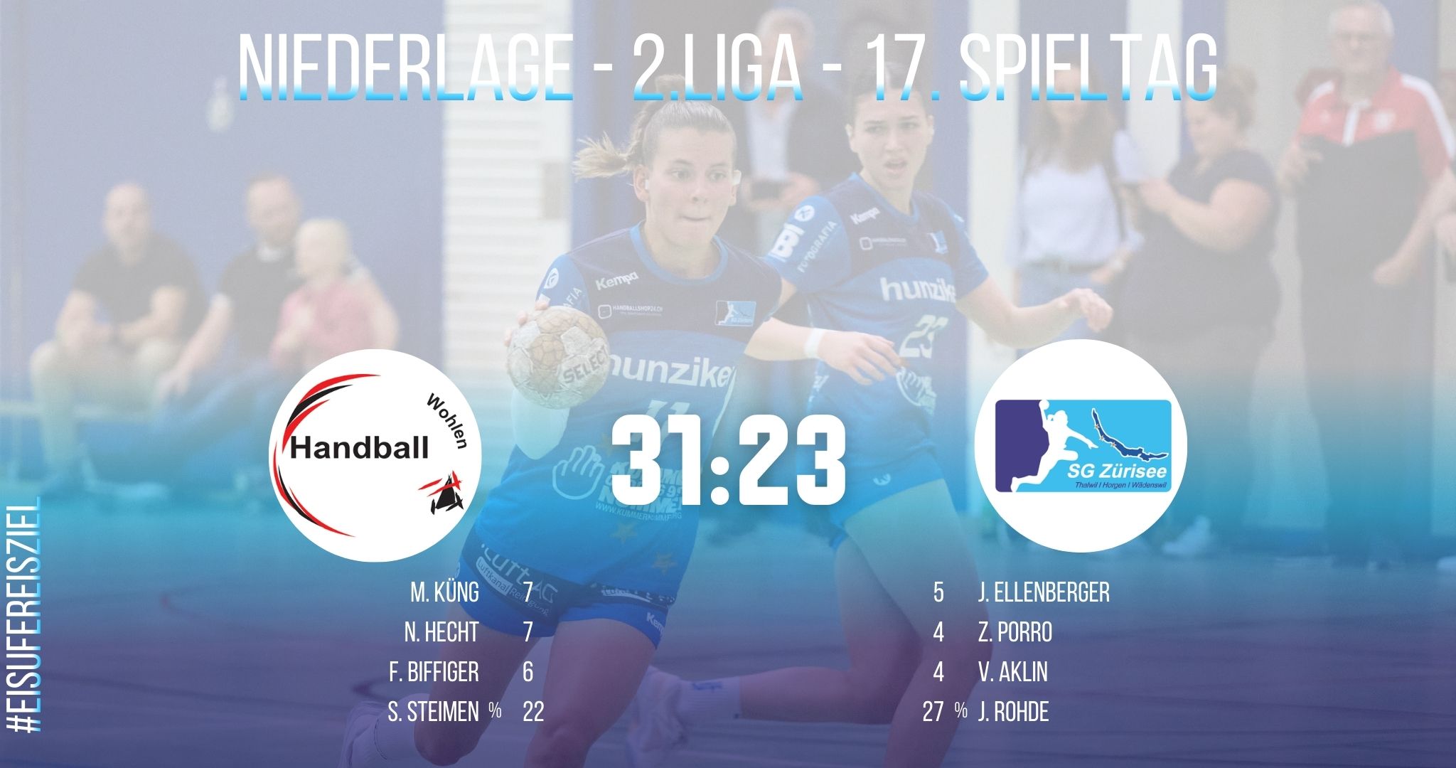 Trotz grossem Einsatz und Kampf bis zum Schluss gelang es der SG Zürisee nicht mehr, den Rückstand aufzuholen. Am Ende mussten sie sich mit 31:23 geschlagen geben. An diesem Samstagabend setzte sich die SG Freiamt als das stärkere Team durch. Die Zürisee Damen kämpften bis zum Schluss, konnten das Spiel jedoch nicht mehr wenden.