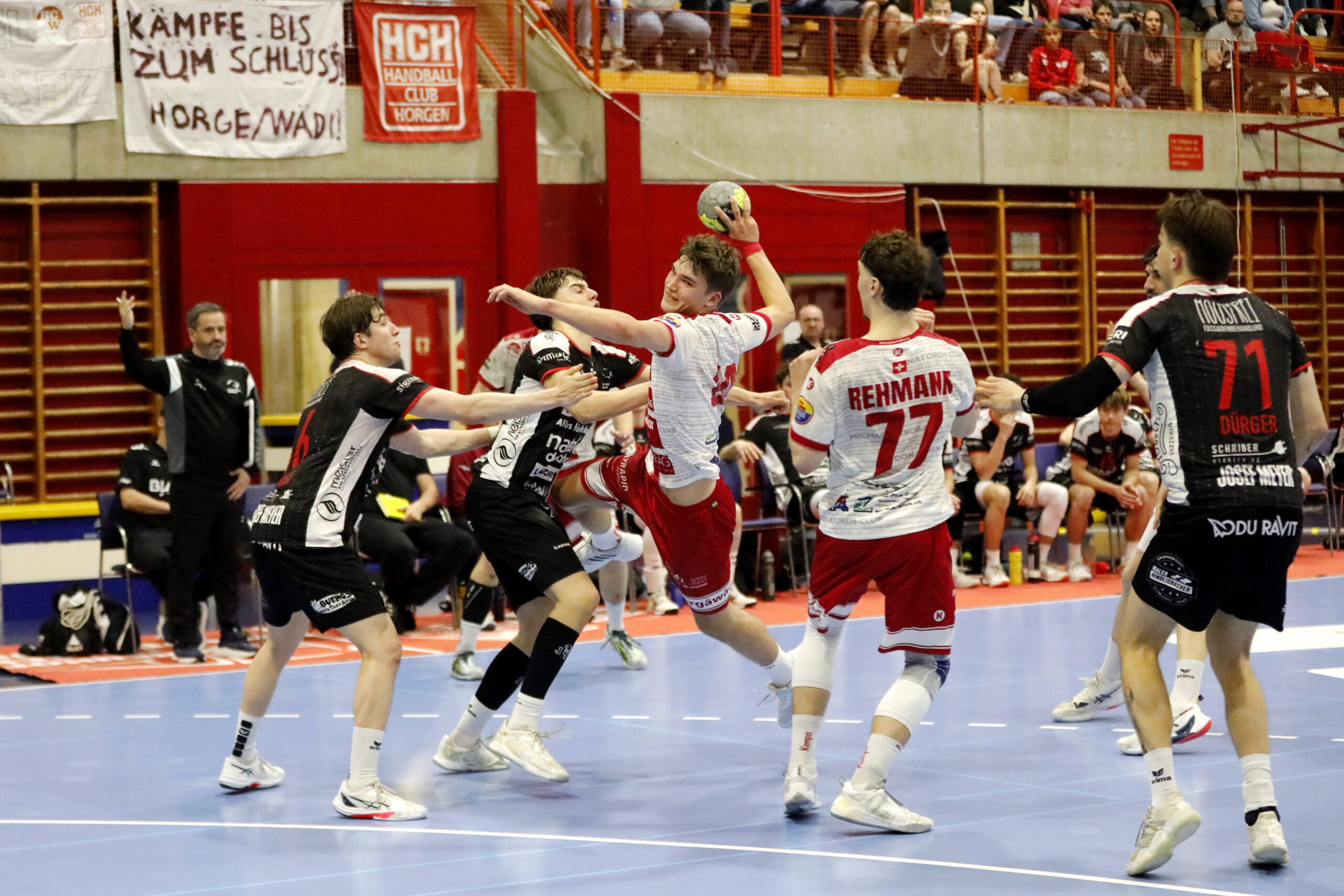 Die SG Wädenswil/Horgen konnte beim letzten Heimspiel der Saison auf die Unterstützung ihrer Fans bauen. Zahlreiche Anhänger fanden den Weg in die Waldegg und sorgten mit rund 500 Stimmen für eine eindrucksvolle Derbystimmung. Bereits beim Anpfiff war die Atmosphäre elektrisierend – „Hopp Wädi-Horgen“ hallte durch die Halle. Eine solche Stimmung ist in der NLB einmalig und bietet dem Team einen besonderen Rückhalt, der auch an diesem Tag beflügelte.