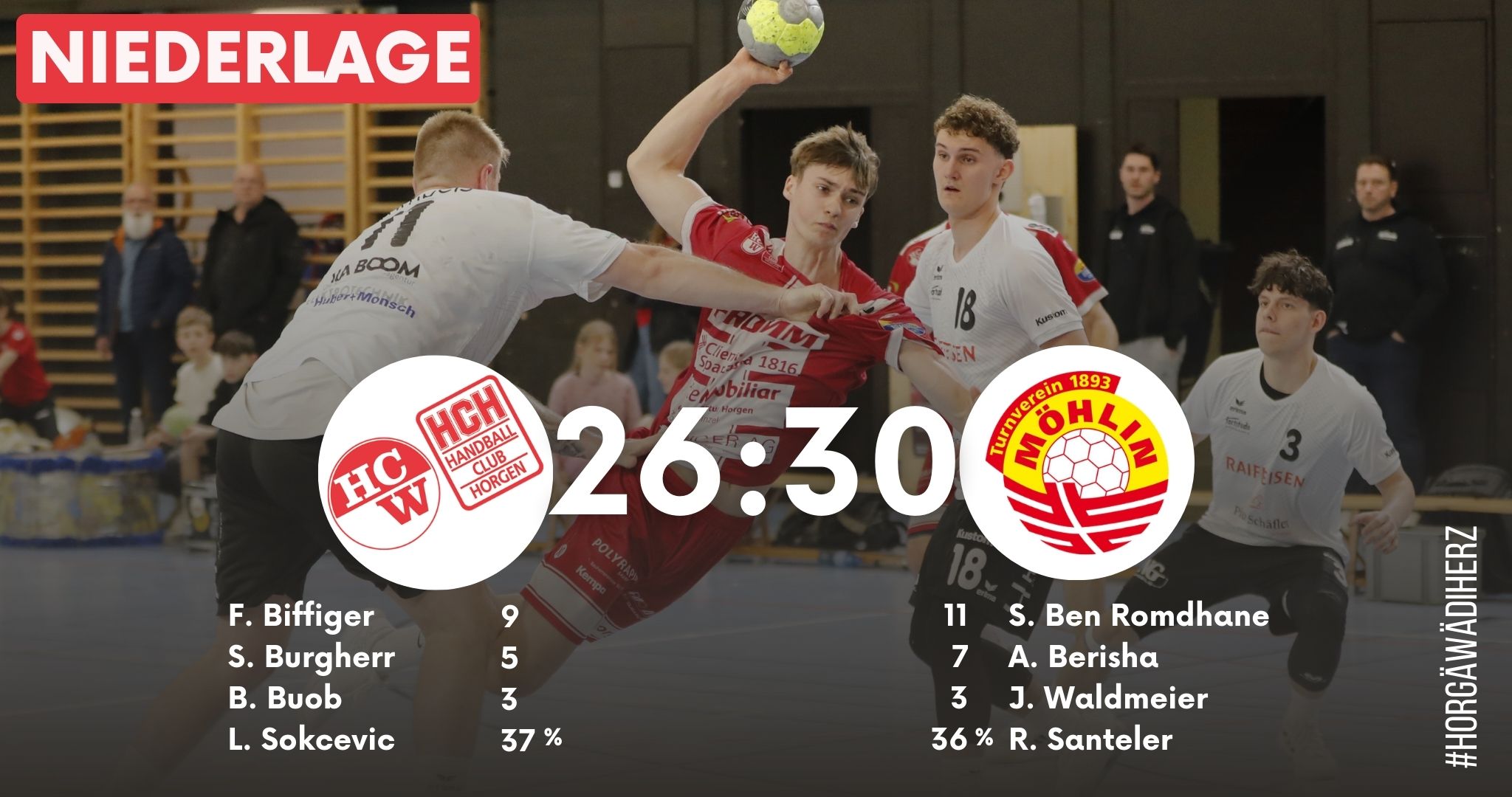 Mit einer kämpferischen Leistung konnte die SG Wädenswil/Horgen gegen einen guten TV Möhlin lange mithalten, scheiterte aber an der eigenen Abschlussquote, um die Gäste zu bezwingen. Erfreulich spielten die jungen Spieler der SG auf, die wegen der vielen Absenzen Verantwortung übernehmen mussten.