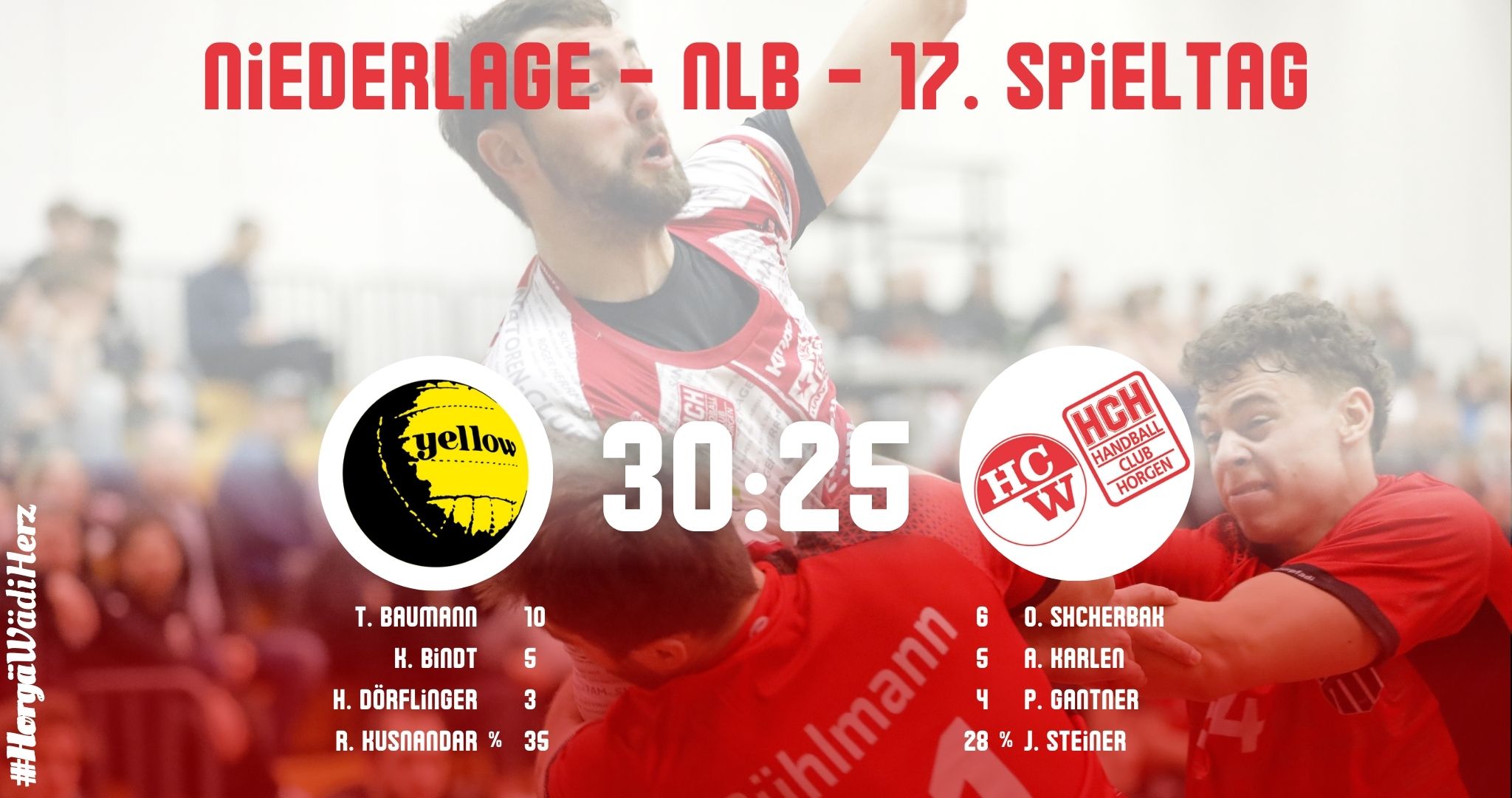 Es ist im Moment ein Auf und Ab an Emotionen, mit denen das Team zu kämpfen hat. Der Auftritt in Winterthur erinnerte so gar nicht an die zweite Halbzeit beim letzten Spiel in der Waldegg. In der Deckung wurde kein Weg gefunden, das Tempospiel der SG Yellow/Pfadi Spieler zu unterbrechen. Auch die Abwehrschwächen auf den Aussenpositionen wurden vom Gegner gnadenlos ausgenutzt, nur allein Bauman am linken Flügel erzielte zehn Treffer.